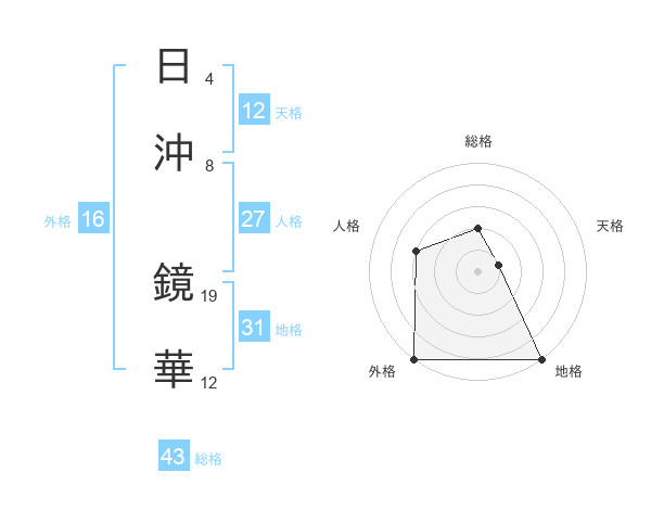 日沖 鏡華さんを姓名の画数から五運を鑑定