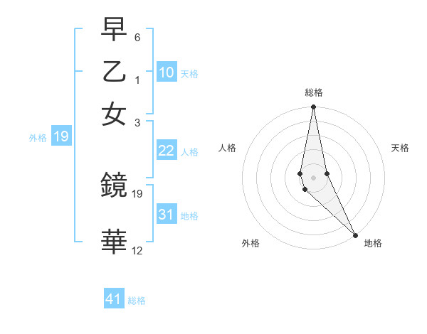 早乙女 鏡華さんを姓名の画数から五運を鑑定