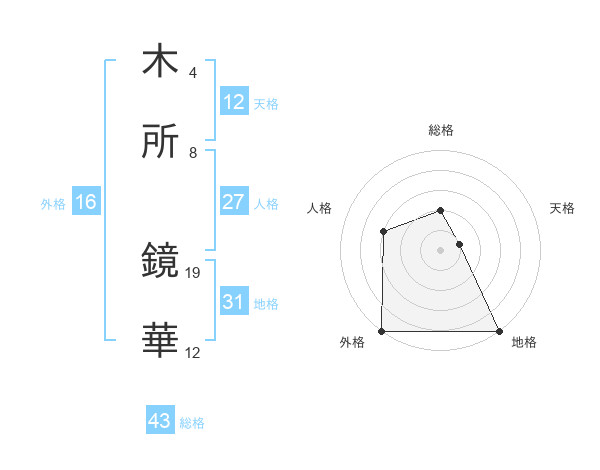 木所 鏡華さんの地格は31画の5点!