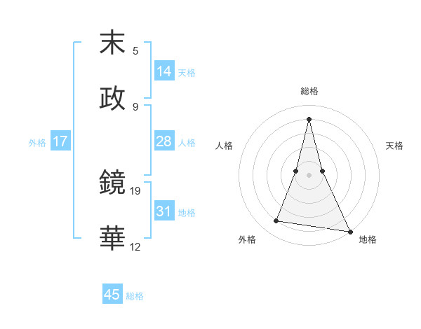 末政 鏡華さんの総格は45画の4点!