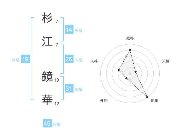 杉江 鏡華さんの総格は45画の4点!