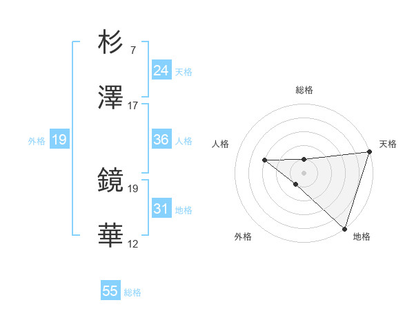 杉澤 鏡華さんの総格は55画の1点!