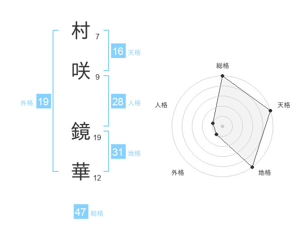 村咲 鏡華さんを姓名の画数から五運を鑑定