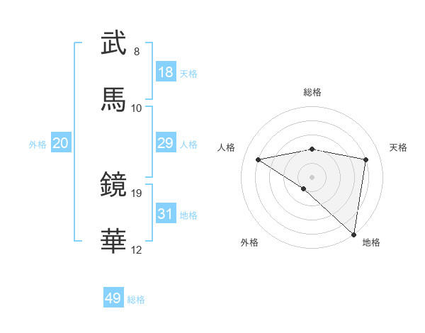 武馬 鏡華さんを姓名の画数から五運を鑑定
