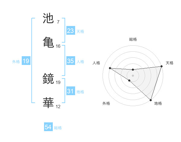 池亀 鏡華さんの天格は23画の5点!