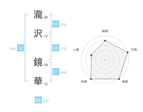 瀧沢 鏡華さんの天格は37画の5点!
