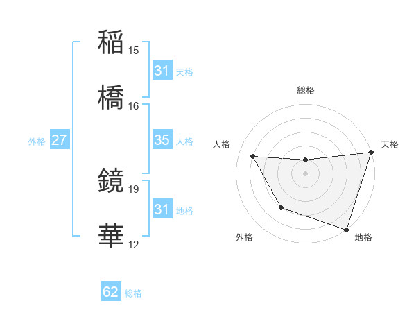 稲橋 鏡華さんの天格は31画の5点!