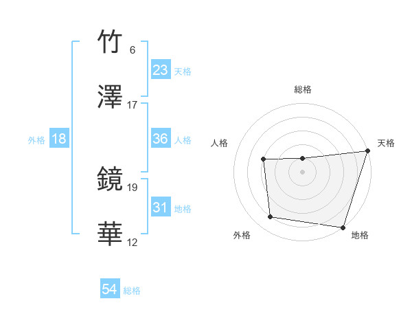竹澤 鏡華さんの天格は23画の5点!