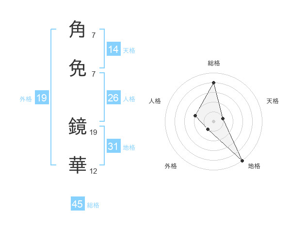 角免 鏡華さんの総格は45画の4点!