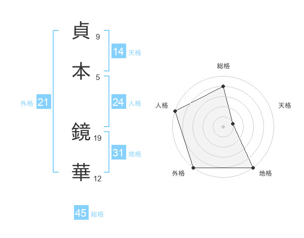 貞本 鏡華さんの地格は31画の5点!