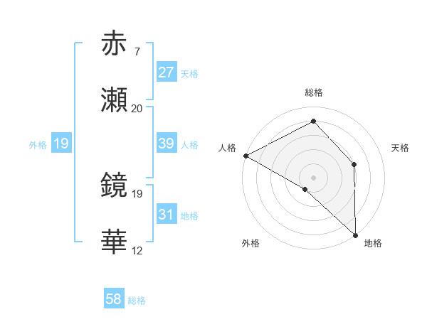 赤瀬 鏡華さんの総格は58画の4点