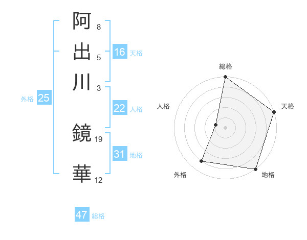 阿出川 鏡華さんを姓名の画数から五運を鑑定