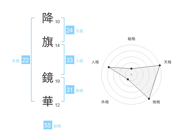 降旗 鏡華さんの総格は55画の1点!