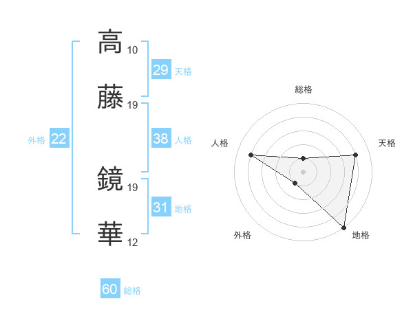 高藤 鏡華さんを姓名の画数から五運を鑑定