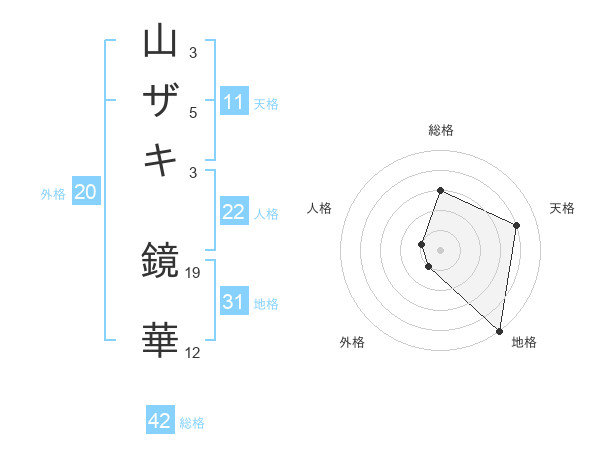 山ザキ 鏡華さんを姓名の画数から五運を鑑定