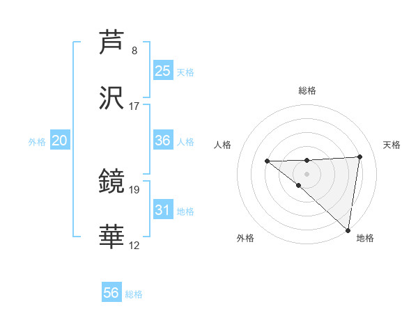 芦沢 鏡華さんの地格は31画の5点!