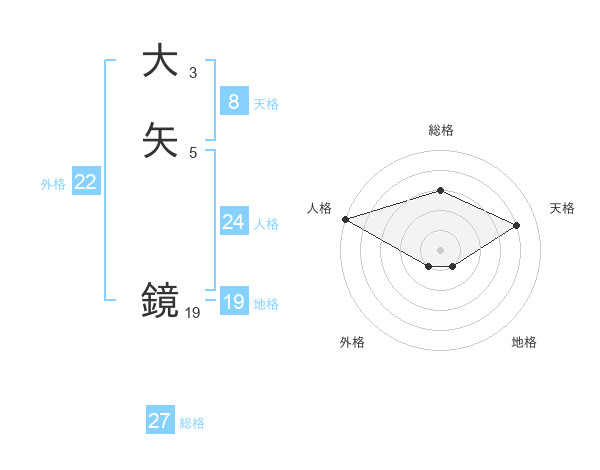 大矢 鏡さんを姓名の画数から五運を鑑定