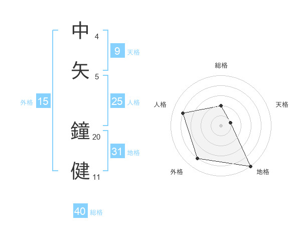 中矢 鐘健さんの外格は15画の4点!