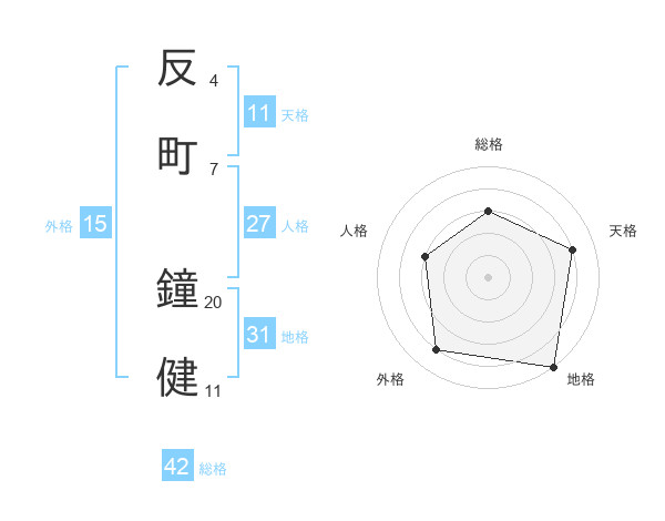反町 鐘健さんを姓名の画数から五運を鑑定