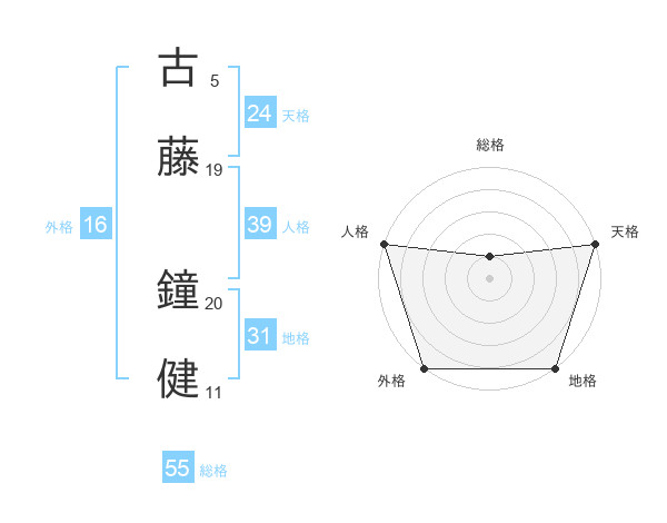 古藤 鐘健さんの総格は55画の1点!