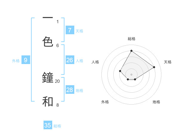 一色 鐘和さんの総格は35画の4点!