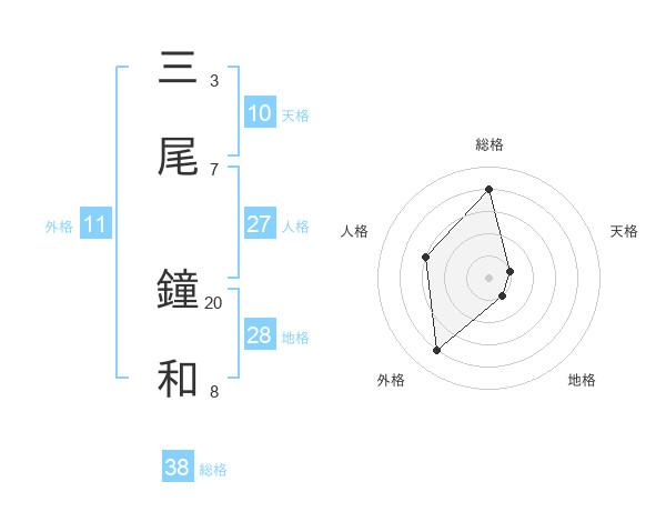 三尾 鐘和さんを姓名の画数から五運を鑑定