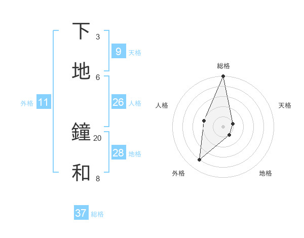 下地 鐘和さんを姓名の画数から五運を鑑定