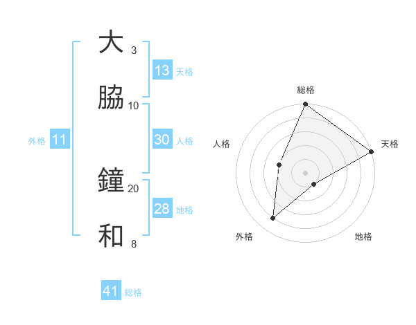 大脇 鐘和さんを姓名の画数から五運を鑑定