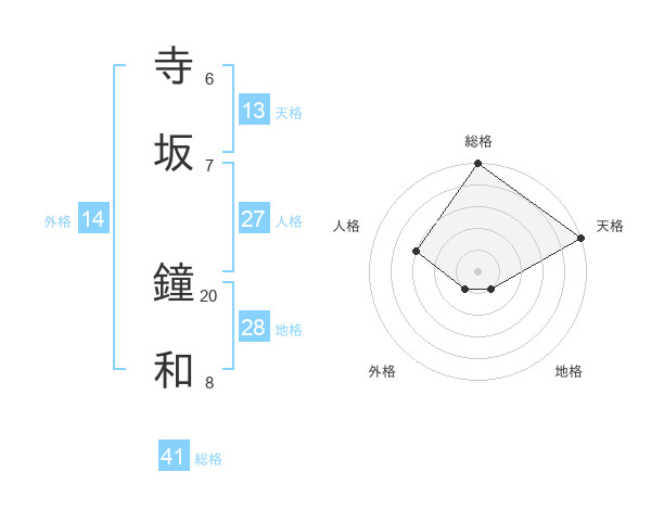 寺坂 鐘和さんの天格は13画の5点!