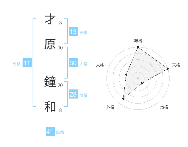 才原 鐘和さんを姓名の画数から五運を鑑定