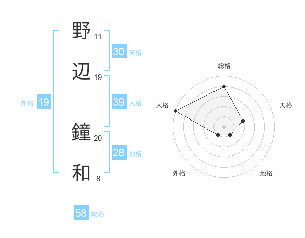 野辺 鐘和さんを姓名の画数から五運を鑑定