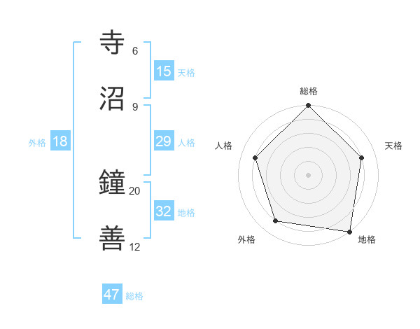 寺沼 鐘善さんを姓名の画数から五運を鑑定