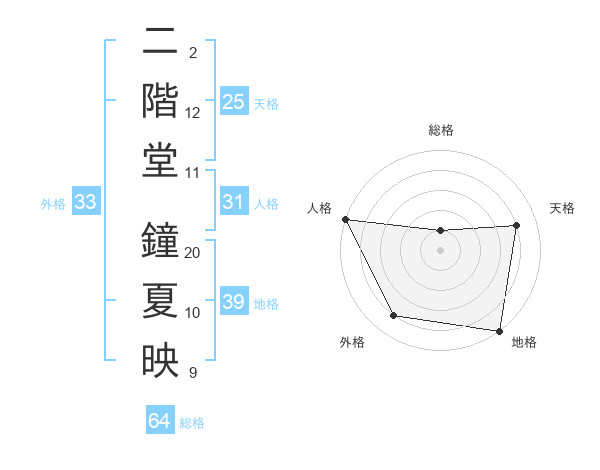 二階堂 鐘夏映さんの外格は33画の4点!