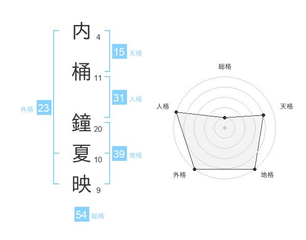 内桶 鐘夏映さんを姓名の画数から五運を鑑定