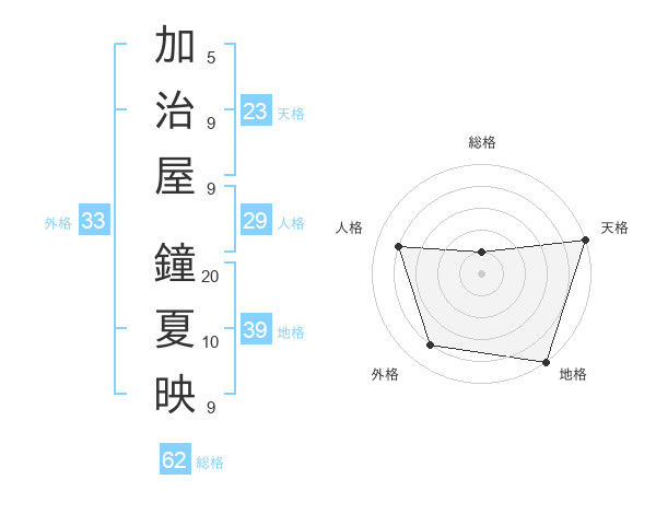 加治屋 鐘夏映さんの外格は33画の4点