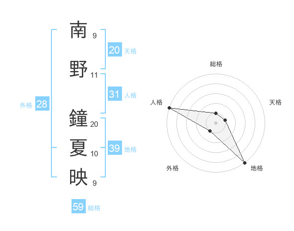 南野 鐘夏映さんを姓名の画数から五運を鑑定