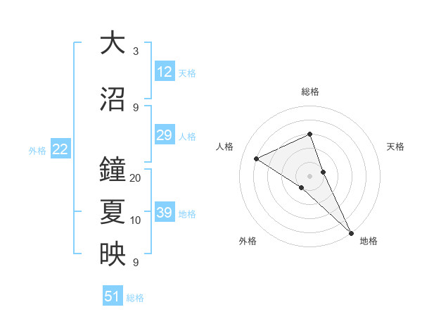 大沼 鐘夏映さんを姓名の画数から五運を鑑定