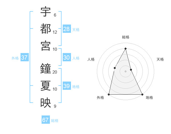 宇都宮 鐘夏映さんの外格は37画の5点!