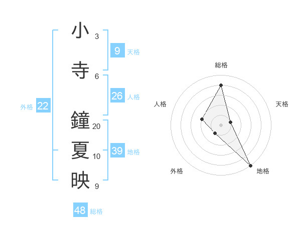 小寺 鐘夏映さんを姓名の画数から五運を鑑定