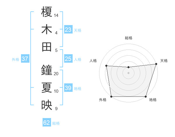 榎木田 鐘夏映さんを姓名の画数から五運を鑑定