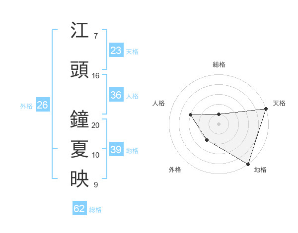 江頭 鐘夏映さんの地格は39画の5点!