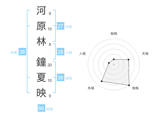 河原林 鐘夏映さんを姓名の画数から五運を鑑定