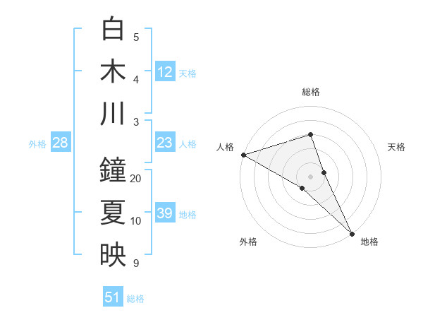白木川 鐘夏映さんを姓名の画数から五運を鑑定