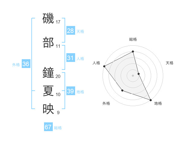 磯部 鐘夏映さんを姓名の画数から五運を鑑定
