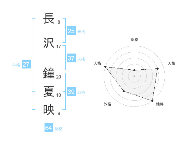 長沢 鐘夏映さんを姓名の画数から五運を鑑定