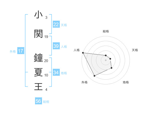 小関 鐘夏王さんを姓名の画数から五運を鑑定