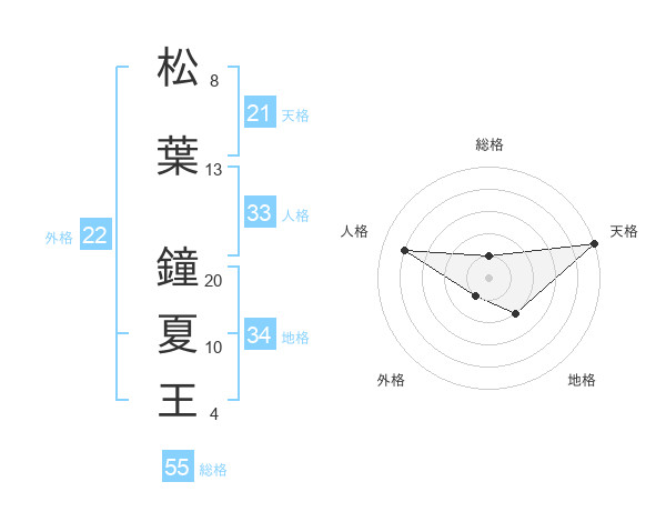松葉 鐘夏王さんを姓名の画数から五運を鑑定