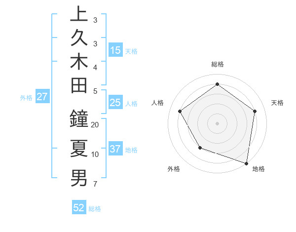 上久木田 鐘夏男さんを姓名の画数から五運を鑑定