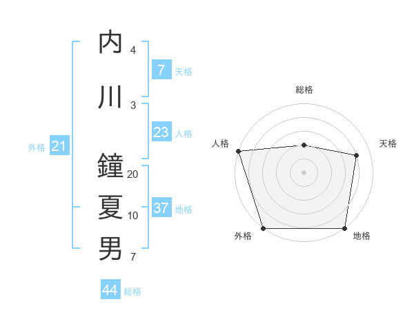 内川 鐘夏男さんを姓名の画数から五運を鑑定
