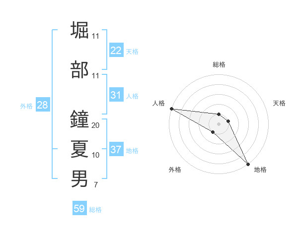 堀部 鐘夏男さんの総格は59画の1点!